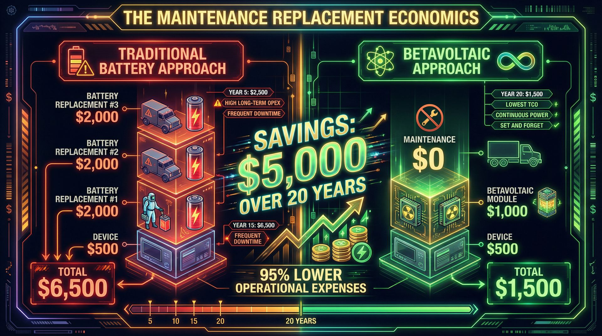 Break-even analysis: If a betavoltaic adds $1,000 to device cost but eliminates 2-3 service visits over 20 years, it’s a massive ROI.