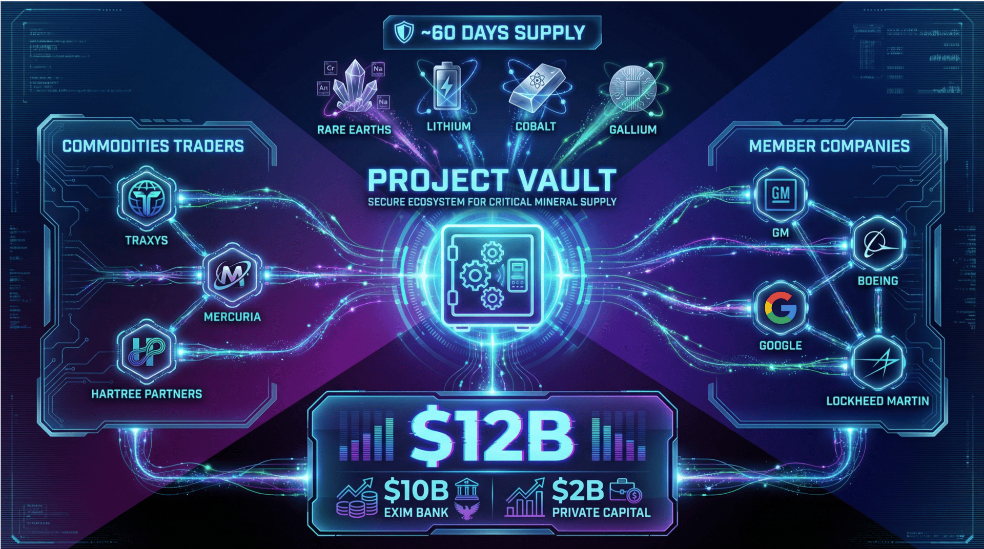 "Project Vault" — a ~$12B U.S. push to stockpile critical minerals (rare earths and friends) so supply shocks don't kneecap EVs, defense, and tech manufacturing.